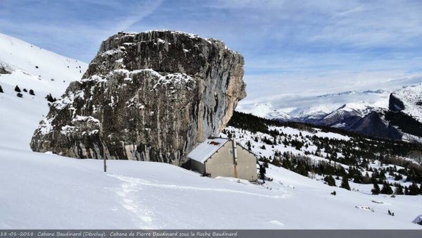 Pierre Baudinard est une cabane de montagne non gardée et l’idée de base est de relier cet abri précieux. Nous prenons du dénivelé facilement au travers d’une forêt de pins et de mélézins. Nous voila d’ores est déjà à notre point de mire, c’est d’ici que nous aurons la possibilité de grimper encore en direction des Prêtres en passant dans un univers bien plus alpin.